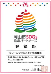 岡山市SDGs推進パートナーズの登録証